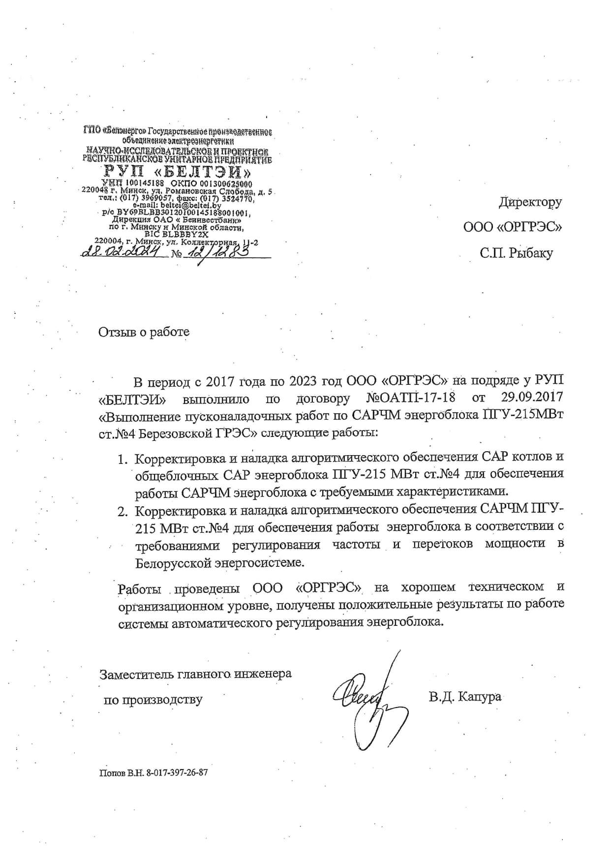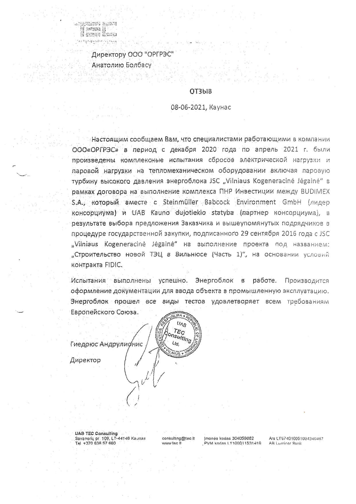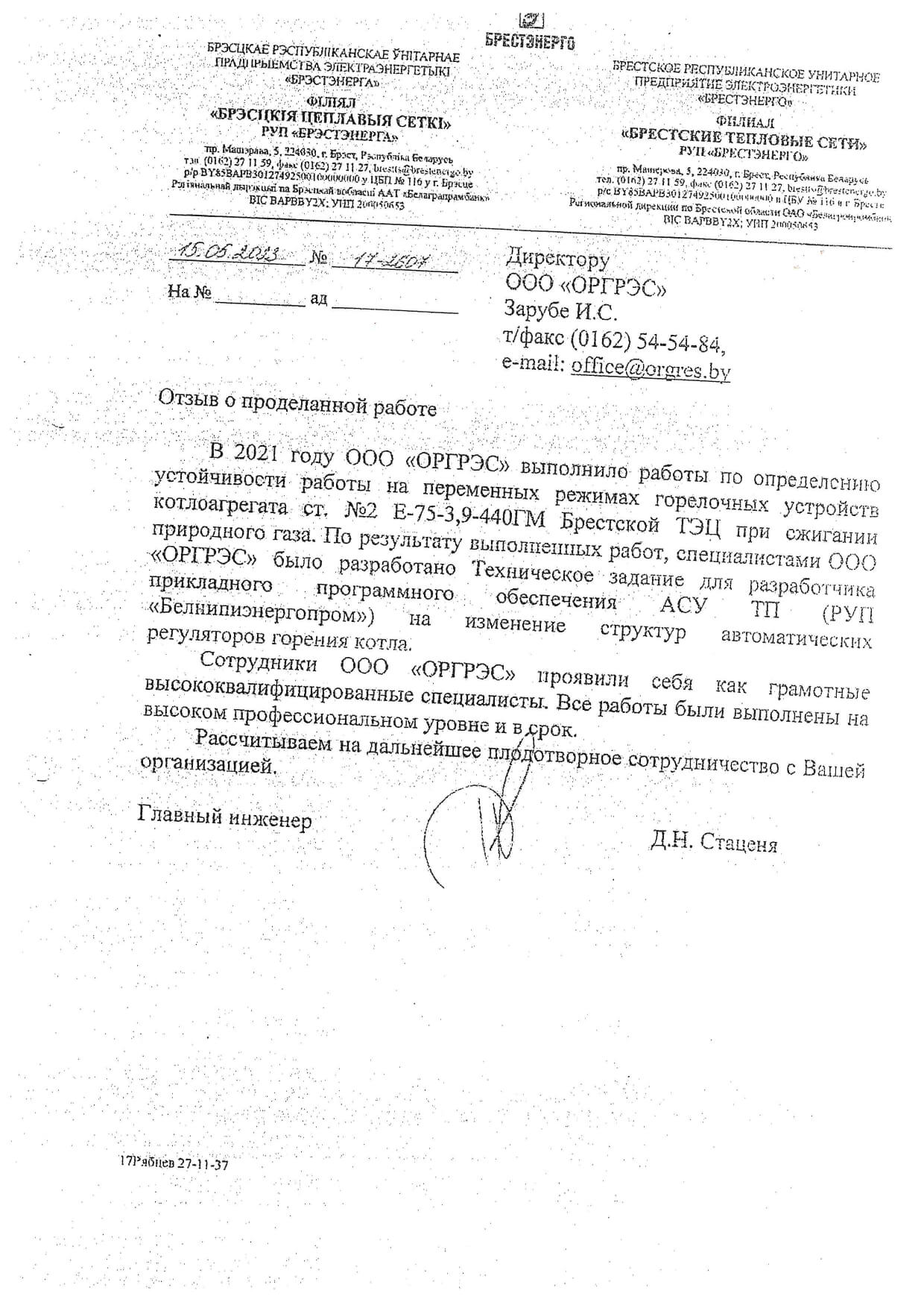 Отзывы партнеров ООО "ОРГРЭС"