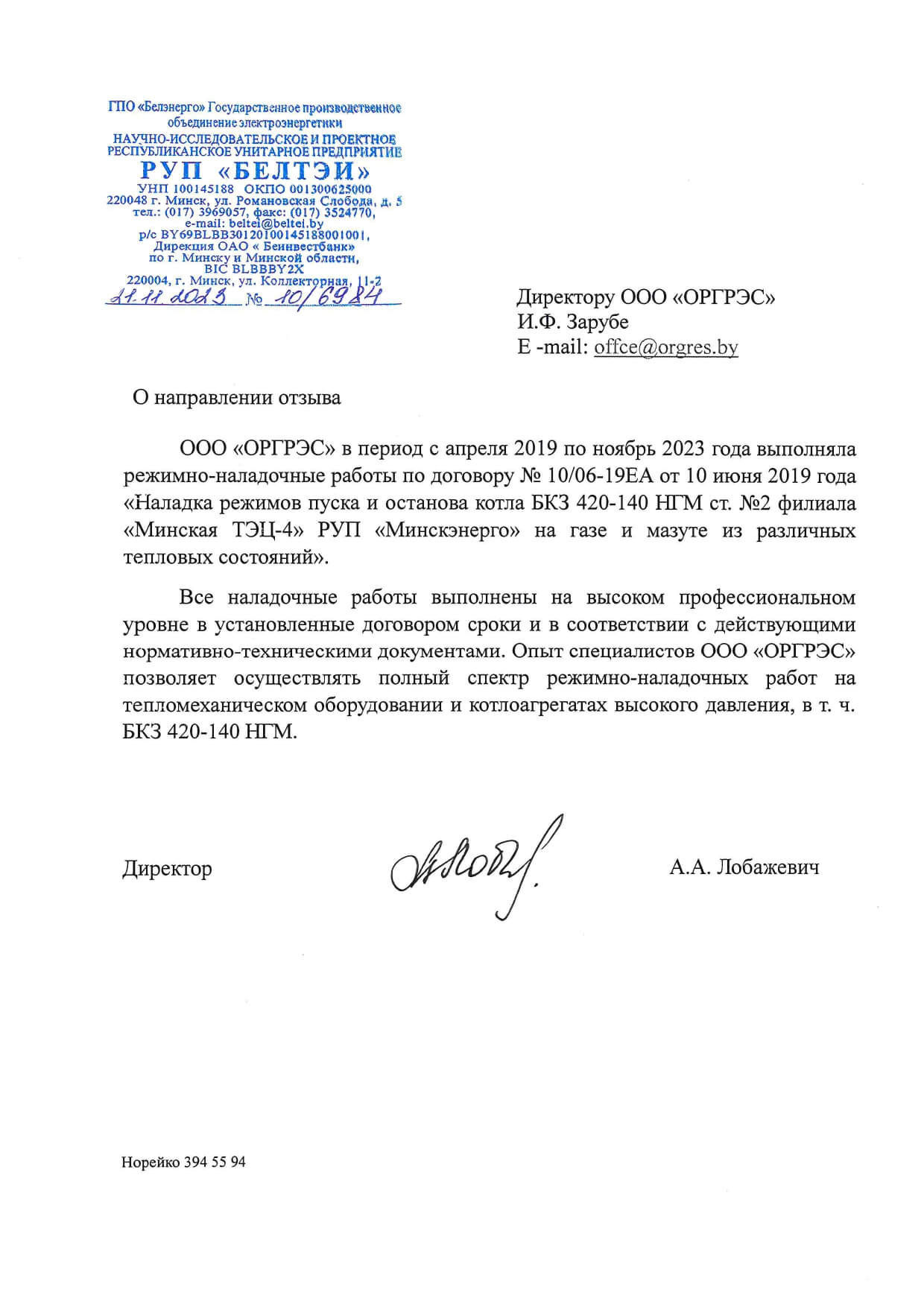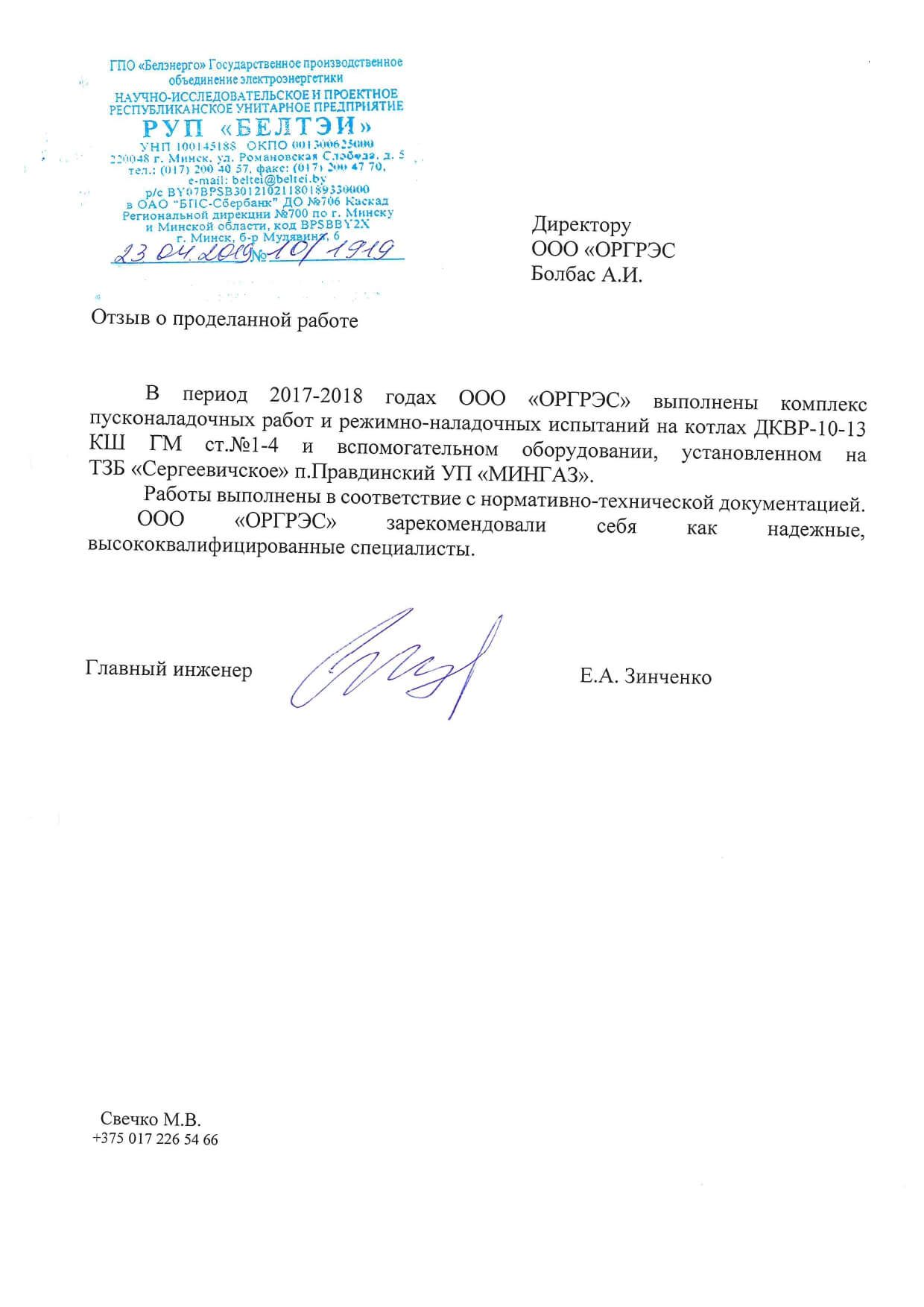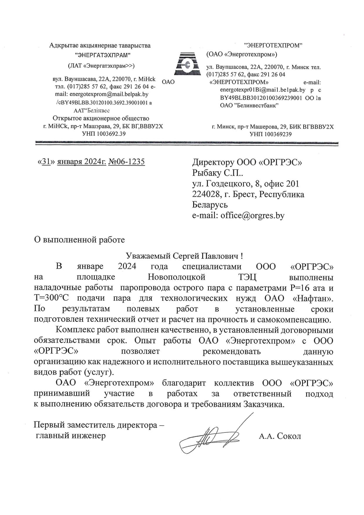 Отзывы партнеров ООО "ОРГРЭС"